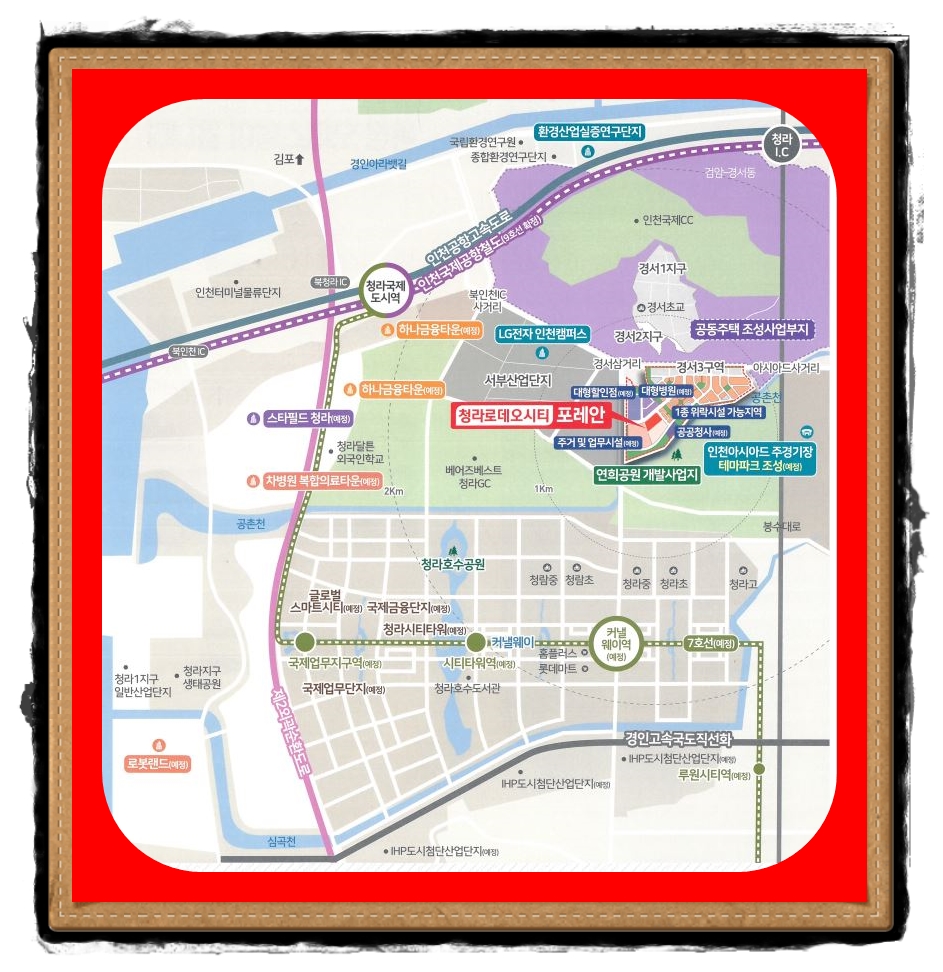 이와 더불어 빼놓을 수 없는 교통에 있어서도 청라국제도시역을 중심으로 랜드마크로 볼 수 있는 호수공원을 지나는 지하철 7호선 연장 및 홍대부터 이어지는 대장홍대선 연장, 세계에서 제일 높은 교량 전망대를 설치할 영종도를 잇는 제3연육교, 신월IC를 잇는 경인고속도로 지하화가 예타를 앞두고 있어 기존의 교통에 더해 서울이던 인천공항 방향이던 진출입 또한 매우 편리해질 것입니다.
